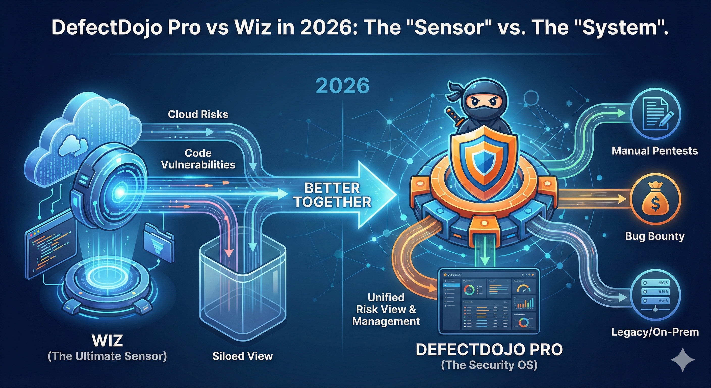 The "DefectDojo vs. Wiz" debate is a false dichotomy. The most successful security teams use them together. They deploy Wiz to get unparalleled visibility into their cloud, and they feed that data into DefectDojo Pro to unify it with their pentests, bug bounties, and application security program.